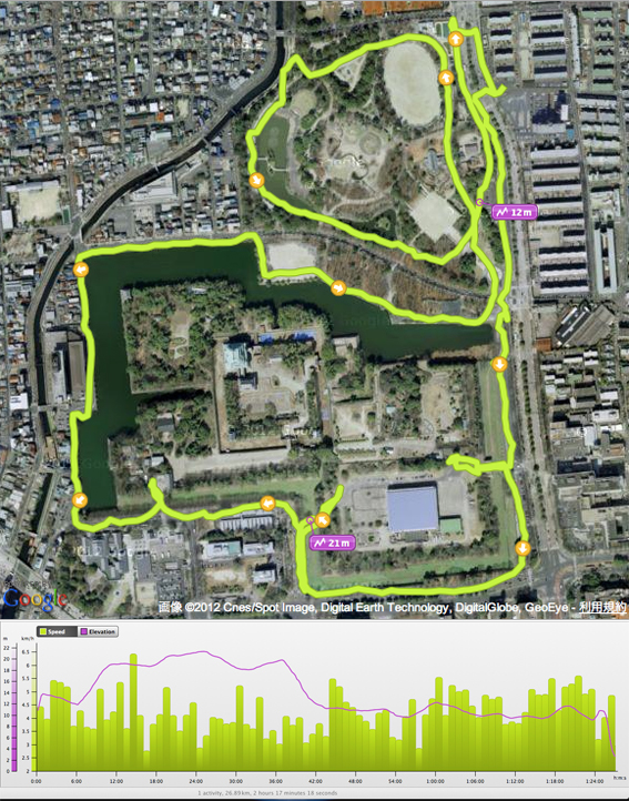 地下鉄名城公園駅がスタートとゴールの周回コース.名古屋城と名城公園をくるりと一周.