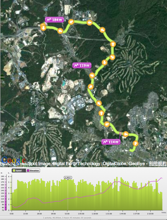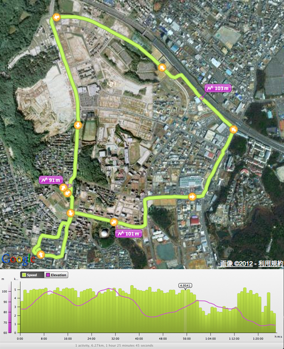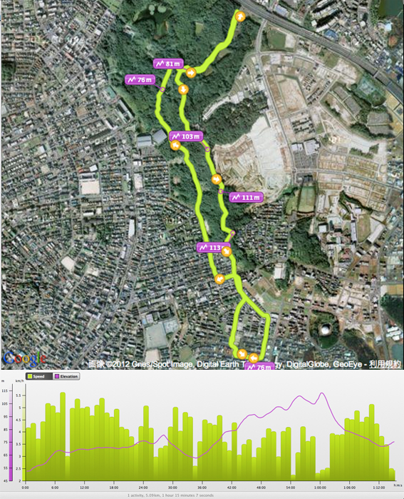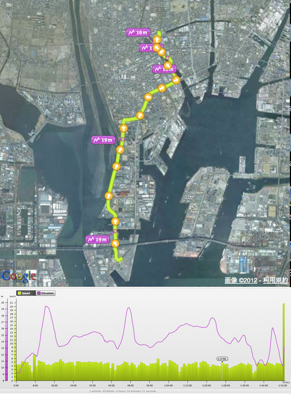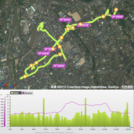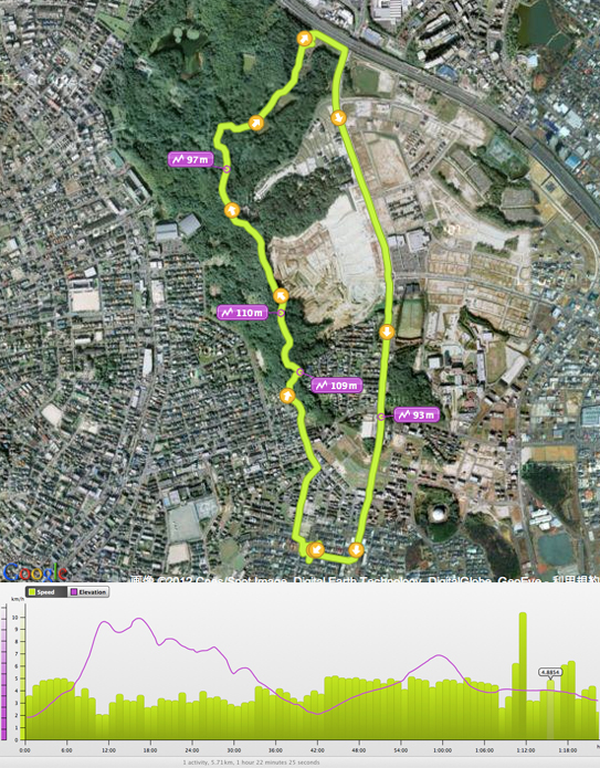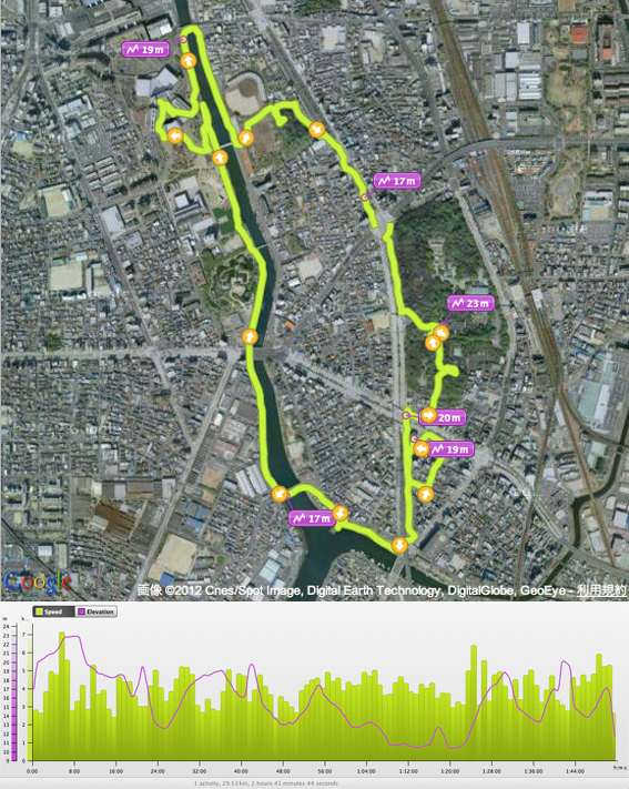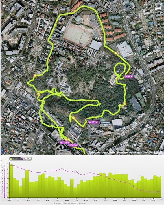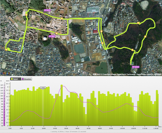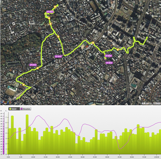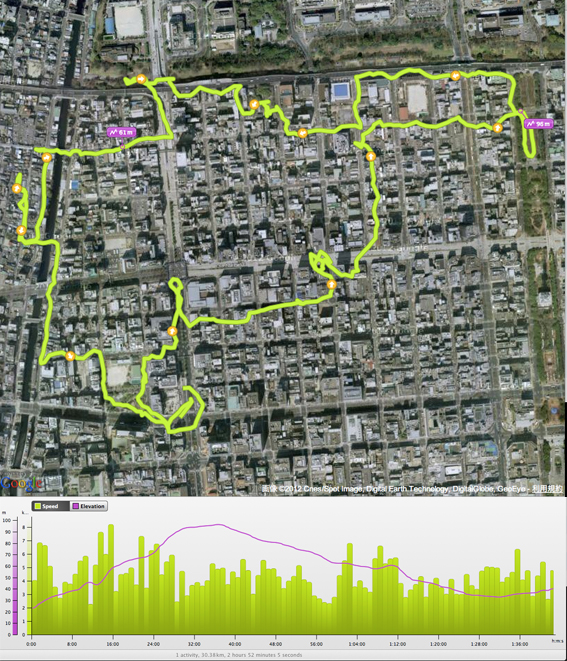 GPSの記録に特に問題はなし.昨日の不調は,多分ビル群の影響.
