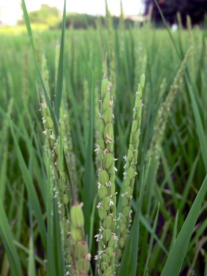 散歩の目的の一つは,井堀の棚田の定点撮影.約1ヶ月ぶりに訪れたところ,すでに稲に花が咲き始めていました.(万歩計を忘れたので歩数は不明).