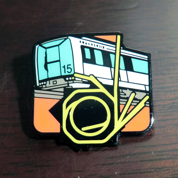 参加賞は,リニモとシンクロトロンがデザインされたピンバッチ.(19000)