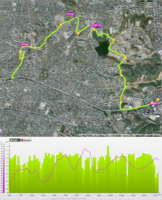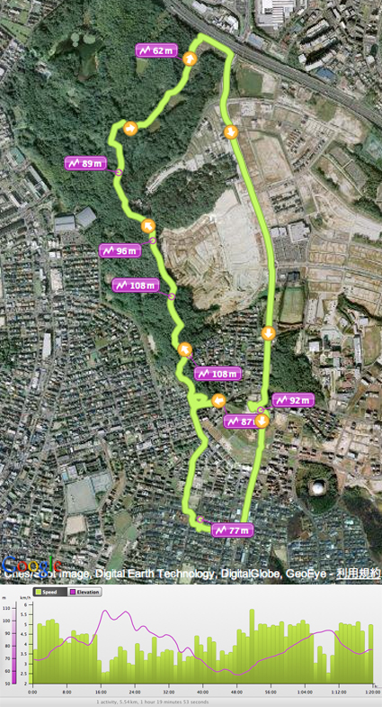 前回に引き続き,猪高緑地縦断第2コースの等間隔(約100 m)撮影も行う.