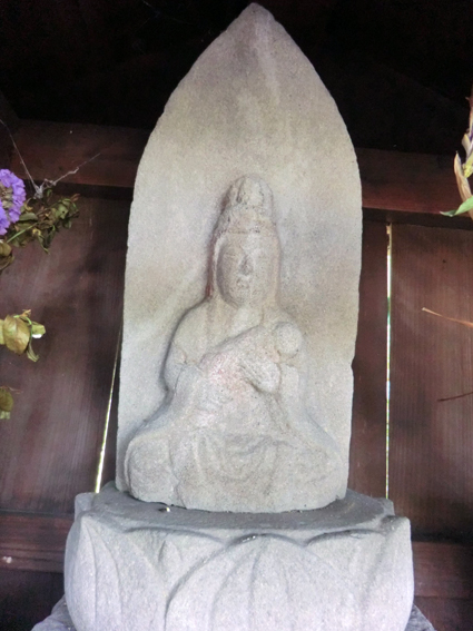 途中にやさしい石仏に出会いました.小さい子を抱いた慈母観音.