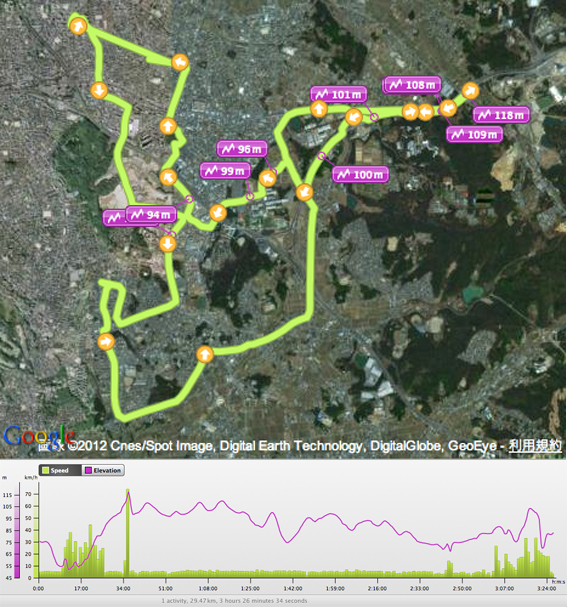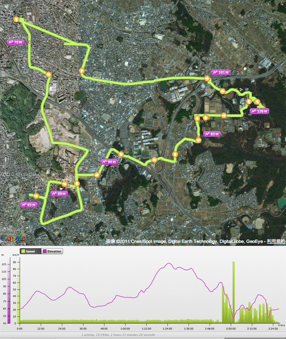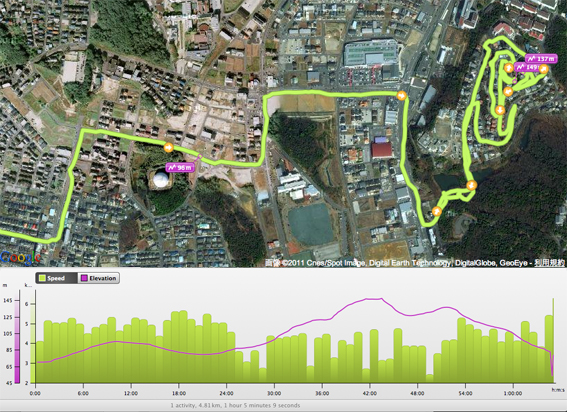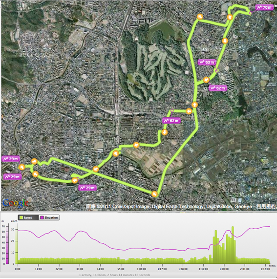 散歩の途中で,GPSの電池が切れてしまい,途中から軌跡ログを記録できなくなってしまう.