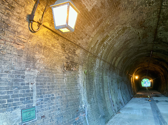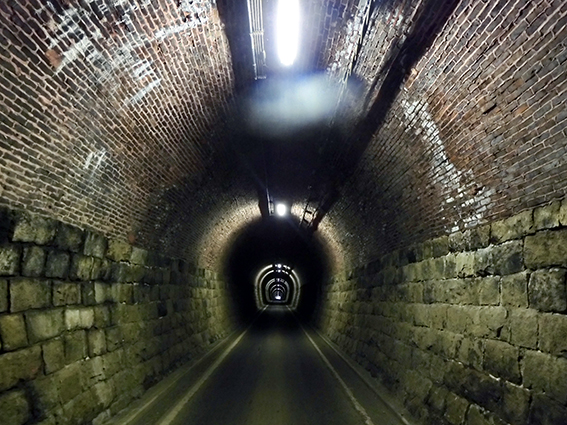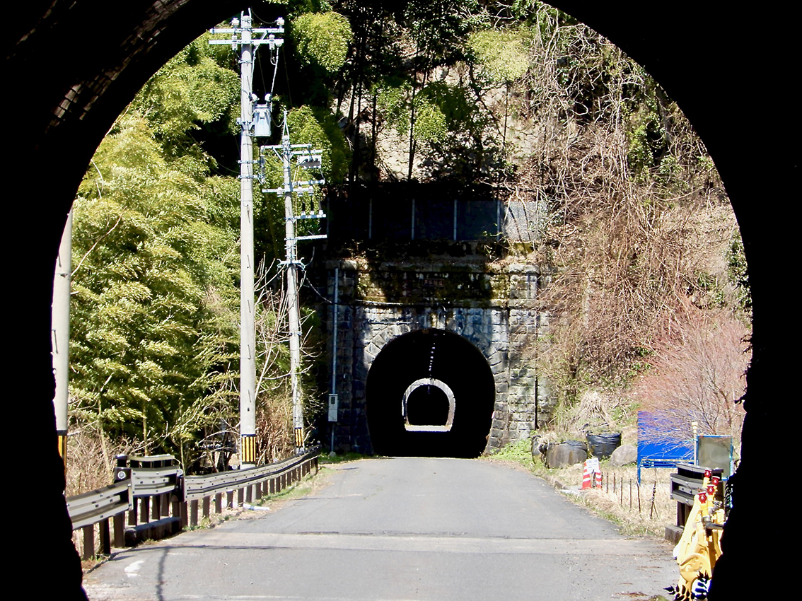 杉津駅跡以北に比べると隧道の数は少ないが,山中隧道に次ぐ長さ979 mの葉原隧道が待っている.交互通行のため,入口には信号があり待ち時間は5分程度となっている.