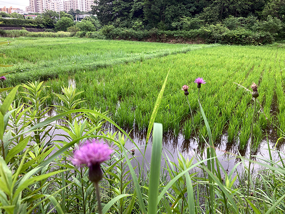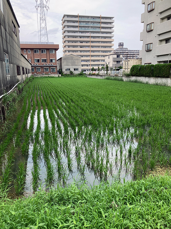 庄内川に突き当たる少し前に,水田が残っている.そして,所々に見られるうねった細い道.これらが,熱田新田の名残なのだろう.(23100 歩)