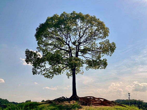 途中で,通称ペレーの木をパチリ.今度は夕日を背景に写してみたい.それは冬か.(18100 歩)