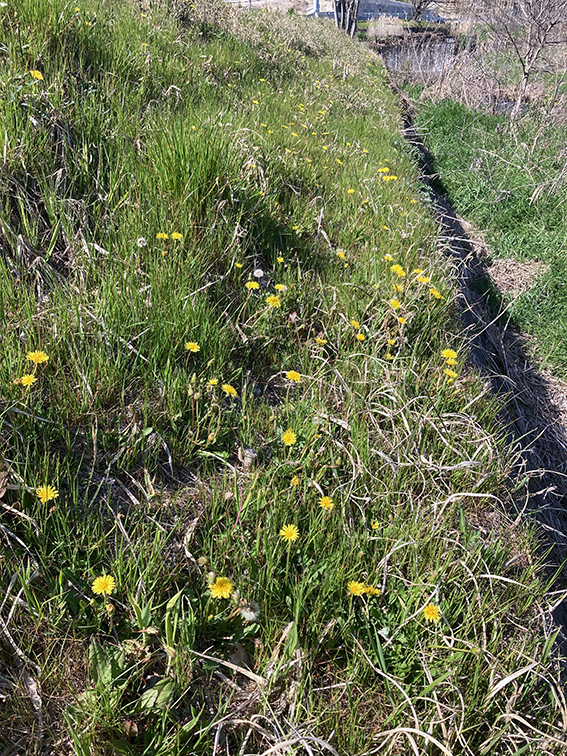 土手にはニホンタンポポの群生.そして少し歩いて東名高速道路沿いに出ると,ここでは多分ほとんどがセイヨウタンポポ.せめて,この棲み分けが維持されますように.