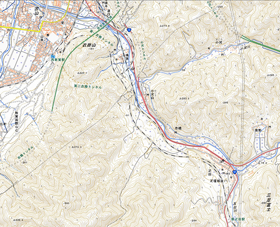 新疋田駅から鳩原ループ線あたりの国土地理院地形図