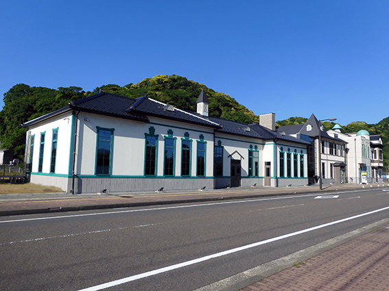 左から順に,復元された,税関旅具検査所,敦賀港駅,大和田回漕部,ロシア義勇艦隊事務所.