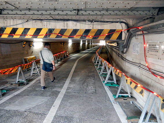 おばけトンネルは,頭を下げて通らなければならないことはかつてと同じかもしれないが(私がここを訪れるのは初めて),道の左右もコンクリートで完全に覆われ,「高輪築堤」周囲の運河の名残は全く見ることができなくなってしまっている.