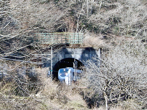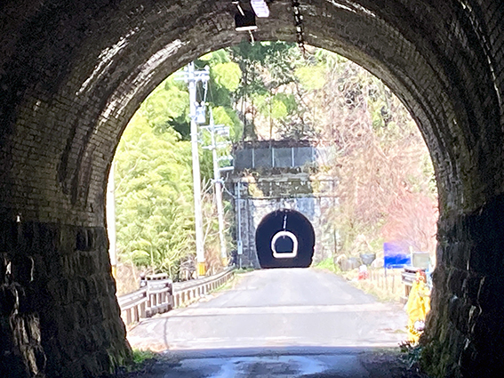 曲谷トンネルの中の芦屋トンネルの中の伊良谷トンネル(これらは珍しく一直線に配列)を写すのには試行錯誤の繰り返し.ズーム撮影の圧縮効果を思い出して成功.
