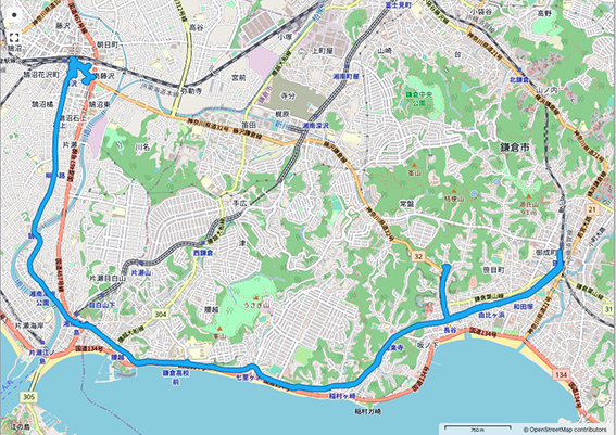 鎌倉駅から東の部分はスキップ.