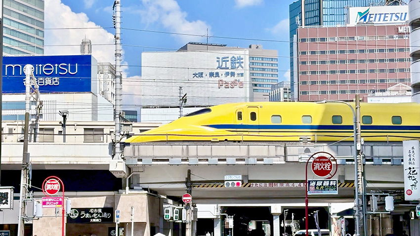今日は,米原—名古屋間だと19〜11分ほどの間に,ディズニー新幹線こだま736号とドクターイエロー上りのぞみが運行する珍しい日.