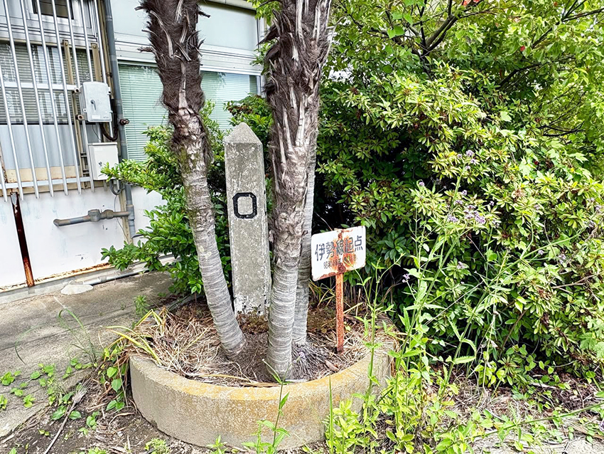 現在の第三セクター伊勢鉄道(河原田駅—津駅)の前身である伊勢線は,四日市駅と津駅間をショートカットする目的で建設された.しかし,なぜかその起点は南四日市駅でありここにゼロキロポスト.河原田駅までは関西本線と並走.