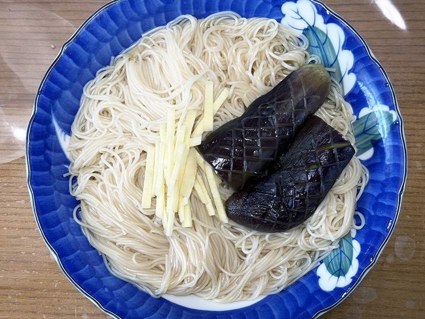 今日の昼食は,キノコのバジルソースパスタ.