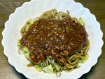 ミートソース:市販のものに炒めた合挽肉を追加したもの.