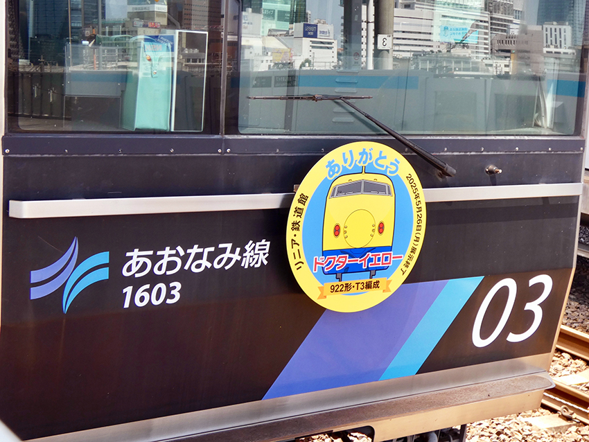 それを記念したJR東海と名古屋臨海高速鉄道のコラボで,あおなみ線(西名古屋港線)にドクターイエローデザインのヘッドマークをつけた車両が,5月1日から2編成走っている.