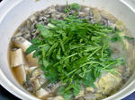 冷凍庫にあった,比内地鶏スープを基本にしてつくってみた.