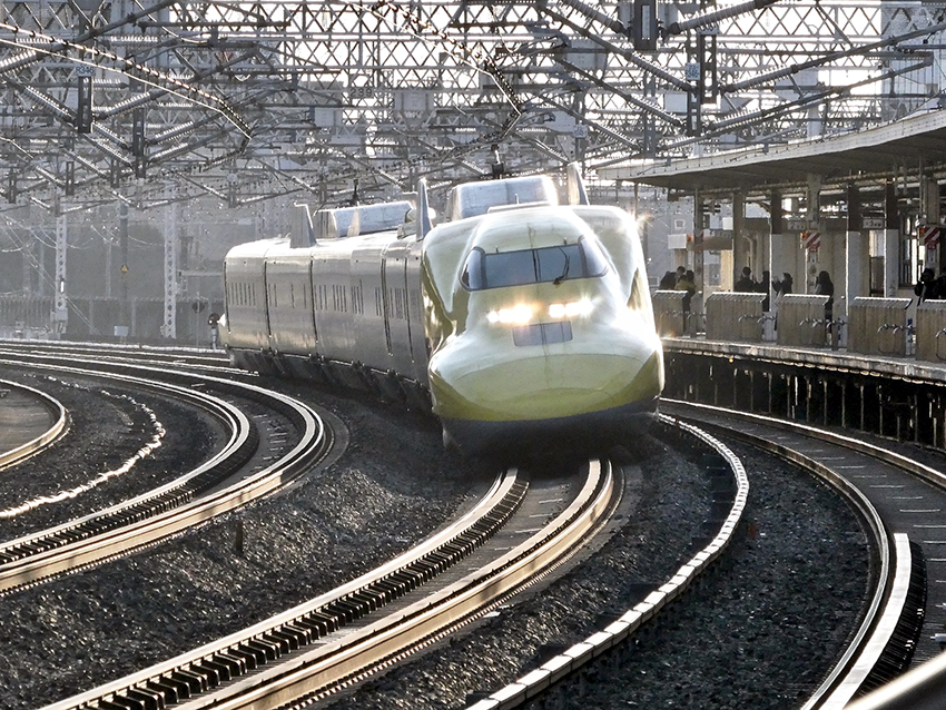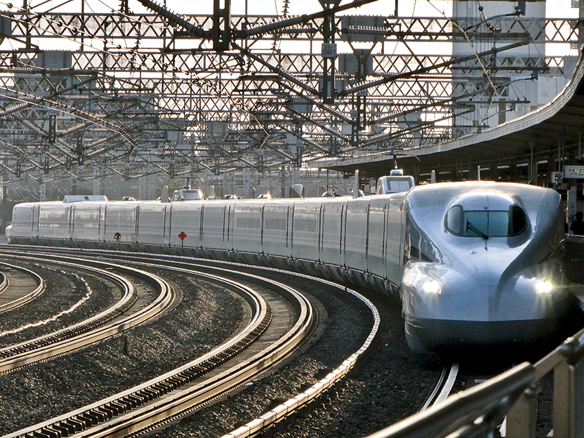 浜松駅では,のぞみが車体を傾けてカーブを高速通過する絵が定番らしい.