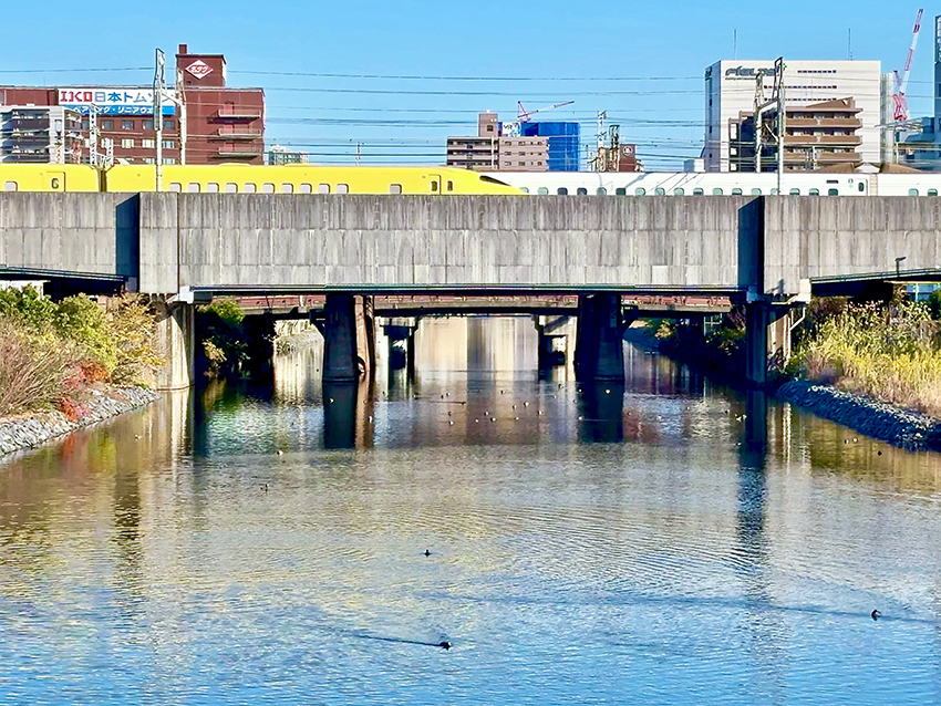 そのまま帰るのも悔しいので,徒歩で長良川橋梁まで.よくよく考えたら,これまでに橋梁を通過する下りドクターイエローを撮したことはなかった.